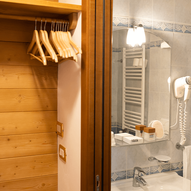 L’albergo dispone di 33 camere arredate in stile montano tutte dotate di balconi o terrazzo, per godere lo splendido panorama. La TV, le cassette di sicurezza, il telefono in camera, la connessione WiFi e confortevoli bagni completano un servizo già impeccabile.